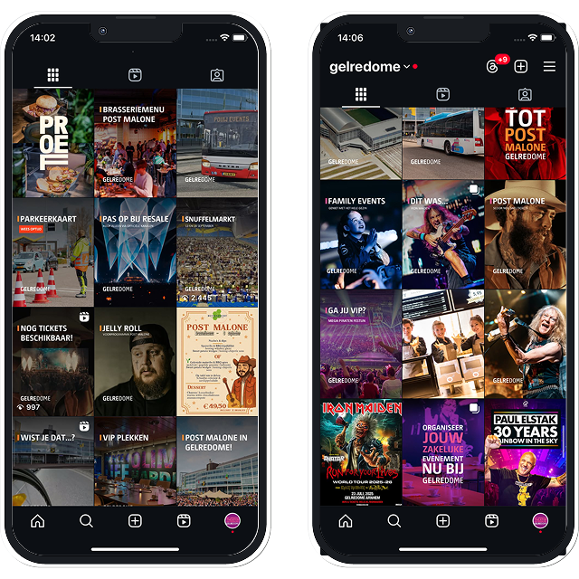 Voor GelreDome verzorgen we social media en evenementen-pagina’s voor een consistente merkbeleving, strakke planning en een actueel evenementen overzicht.