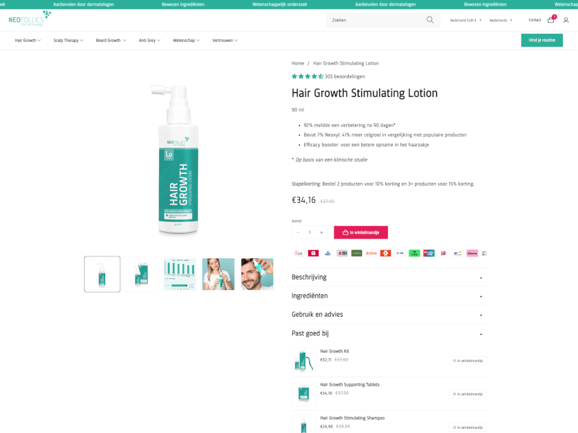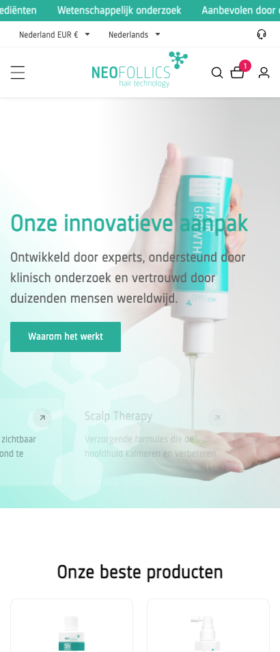 Neofollics is een internationale speler in hoogwaardige haarverzorgingsproducten. Voor een klant van dit kaliber is een vlekkeloze e-commerce omgeving essentieel; met hoge volumes en grote belangen heeft elke technische imperfectie direct impact op de omzet. De kern van dit project was het moderniseren van de digitale infrastructuur.