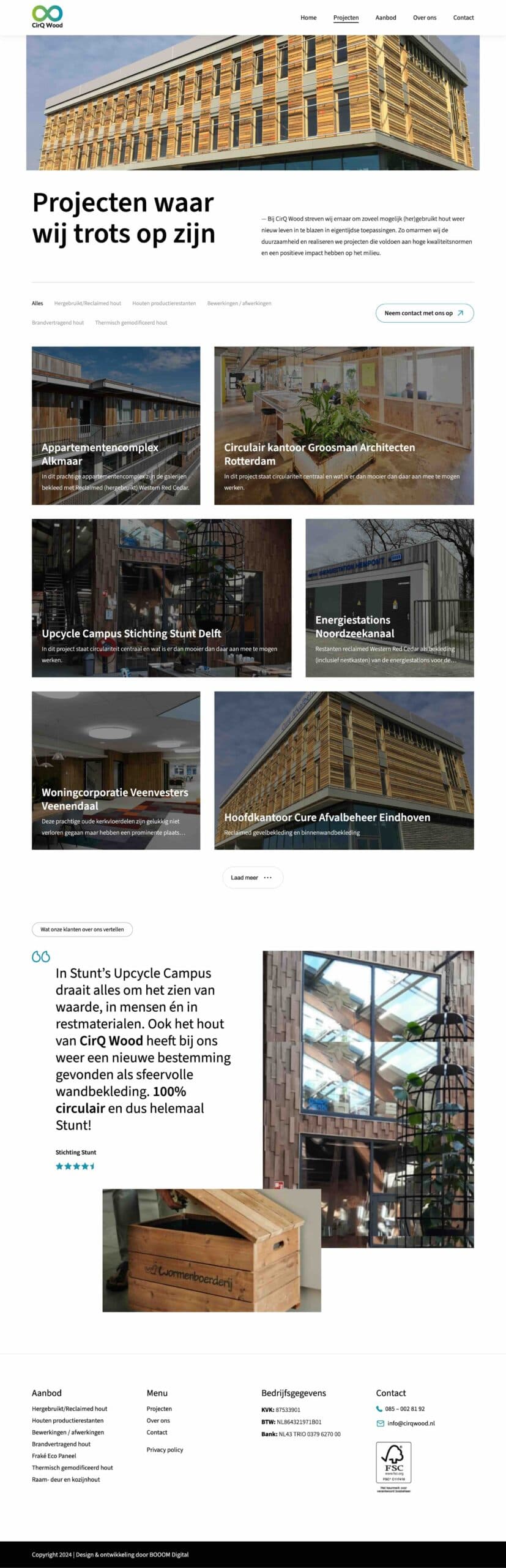 CirQ Wood omarmt duurzaamheid door zich volledig te richten op het leveren van hergebruikt hout en productie restanten aan bouw- en handelsbedrijven. Deze innovatieve werkwijze zou volgens hen de nieuwe standaard moeten worden. Daarom moet de website een positionering krijgen die de doelgroep écht aanspreekt. Door de moderne en gebruiksvriendelijke website geven wij een representatief beeld van CirQ Wood in de online wereld. De website helpt om de doelgroep effectief te bereiken, de merkwaarden beter uit te dragen en de gebruiker een uitstekende online ervaring te bieden. Dit zorgt ervoor dat nieuwe en bestaande gebruikers over gaan op conversie.