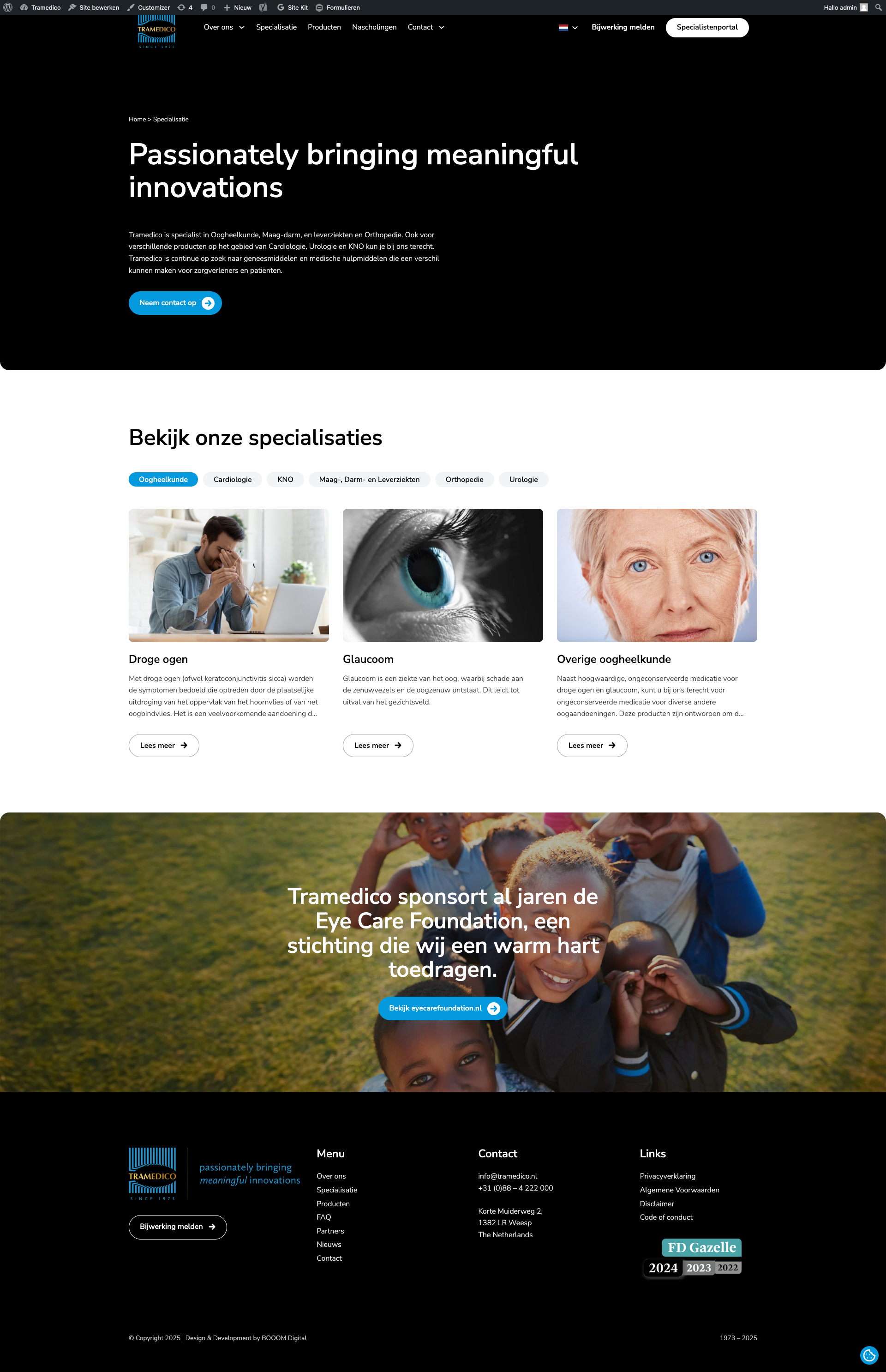 Voor de FD Gazelle Tramedico hebben wij een nieuwe gebruiksvriendelijke website ontworpen en ontwikkeld. Dit farmacologische familiebedrijf dat de afgelopen jaren een flinke groei doormaakte, was toe aan een digitale inhaalsprong. Daar hebben wij ze mee geholpen, een op het oog eenvoudige website met een complex systeem er achter: het specialistenportaal.